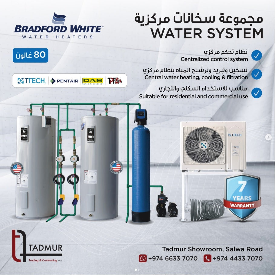 مع أقصى درجات الحرارة في قطر ، يتم ضمان أنظمة المياه الخاصة بنا لمنحك الراحة التي تمس الحاجة إليها - الماء الساخن في فصل الشتاء والماء البارد في الصيف. إنه حل متكامل للتدفئة والتبريد وترشيح الماء.